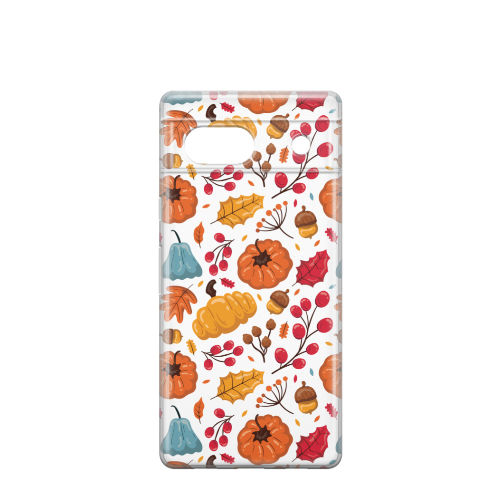 Google Pixel 7a Gummi Hülle Laub und Kürbisse - Orange