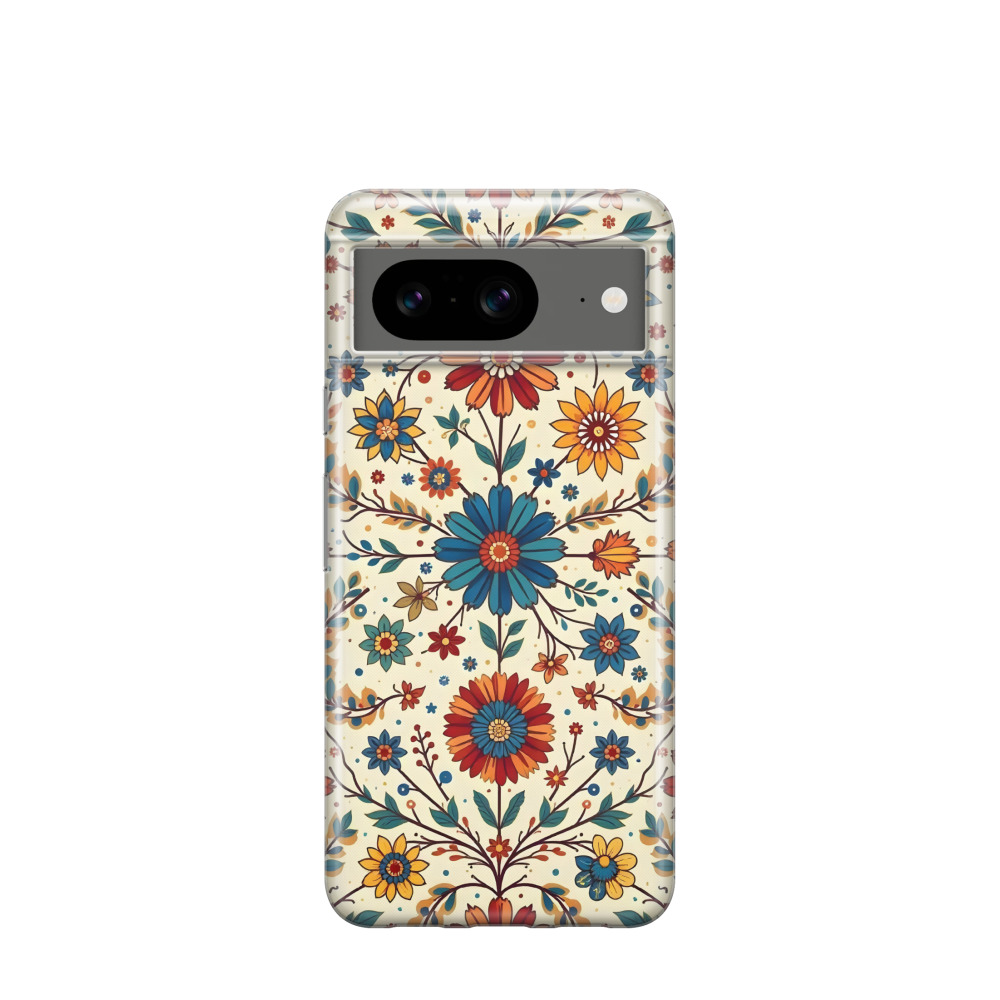 Google Pixel 8 Gummi Hülle Majolika-Farbenfreude - Blau / Gelb / Rot
