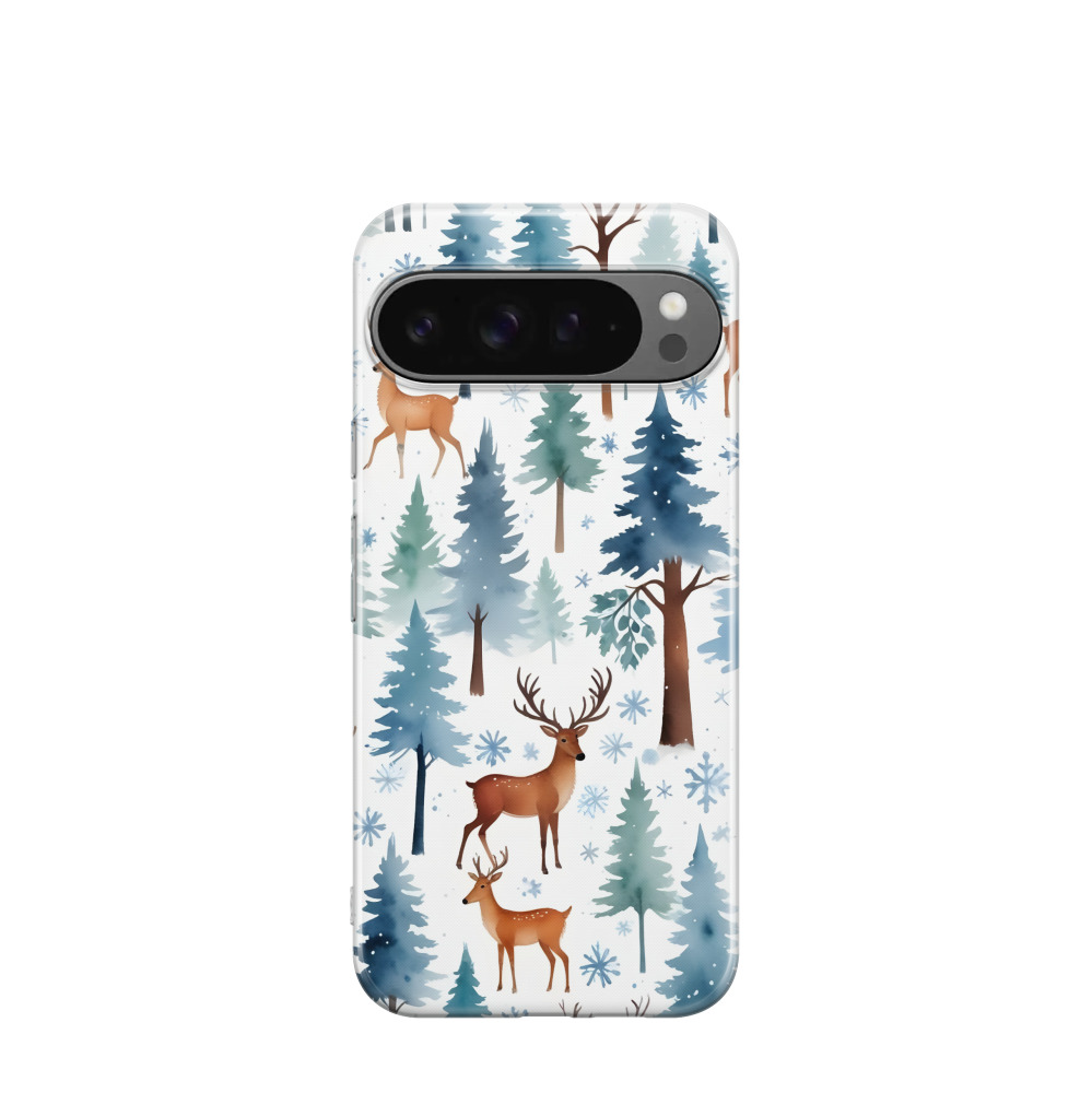 Google Pixel 9 Gummi Hülle Schneehirsche - Blau / Gelb / Rot