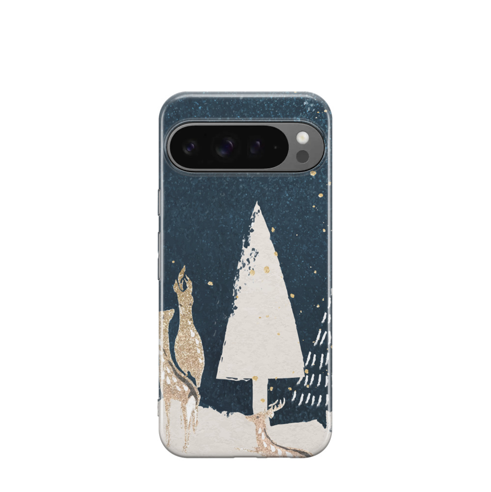 Google Pixel 9 Gummi Hülle Winterlicher Hirsch - Blau