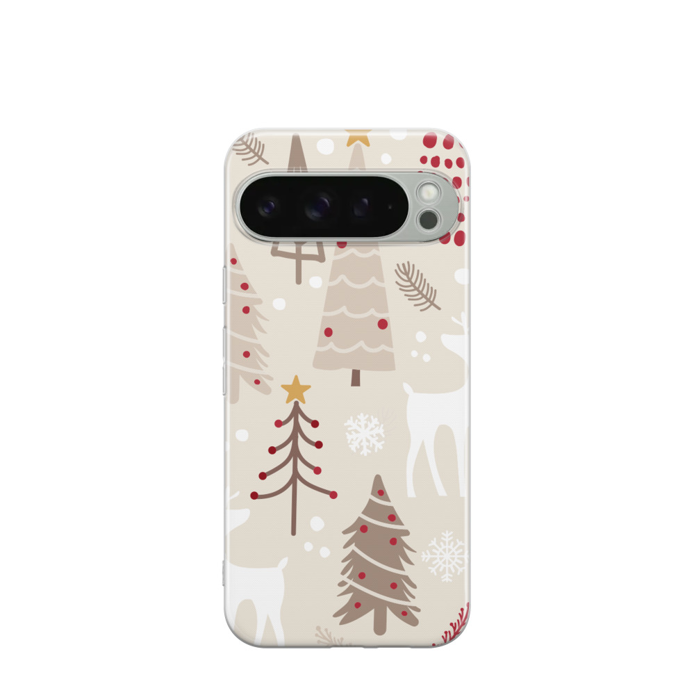 Google Pixel 9 Pro XL Gummi Hülle Weihnachtszeit im Wald - Beige