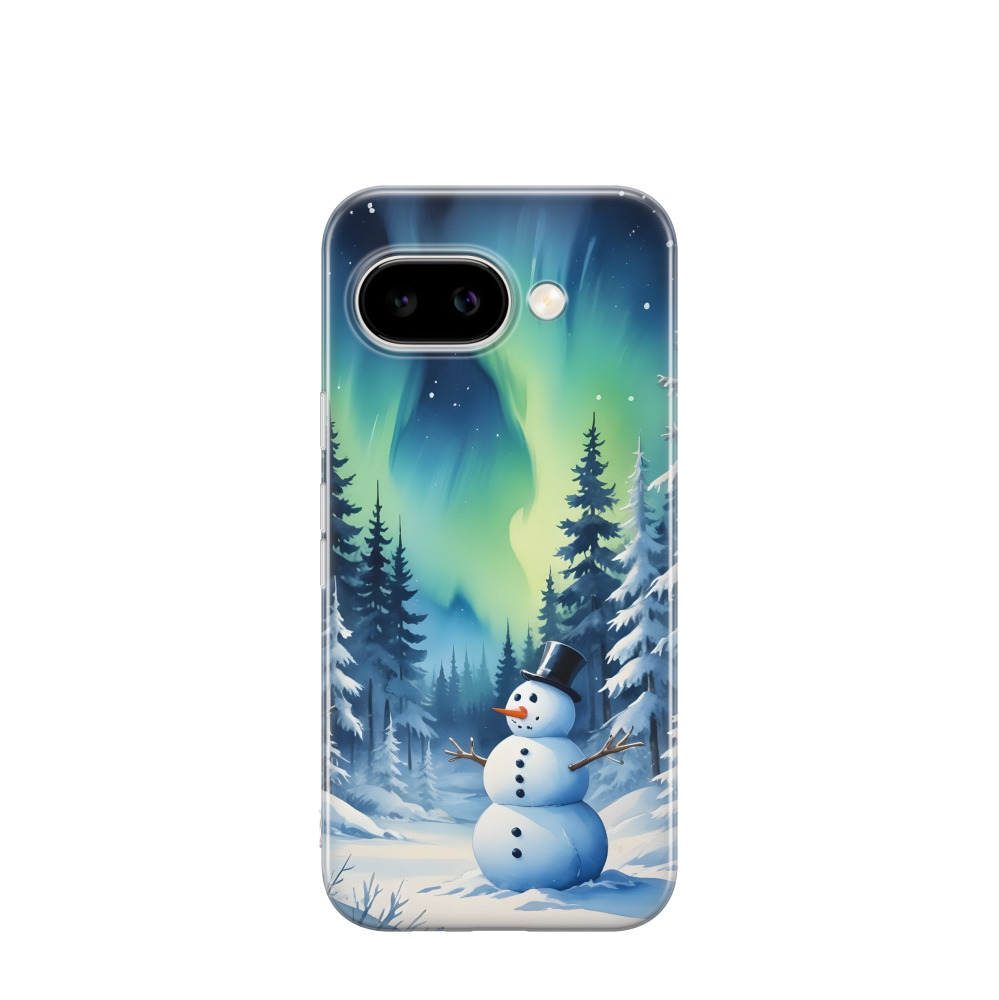 Google Pixel 9a Gummi Hülle Nordlicht Schneemann - Türkis