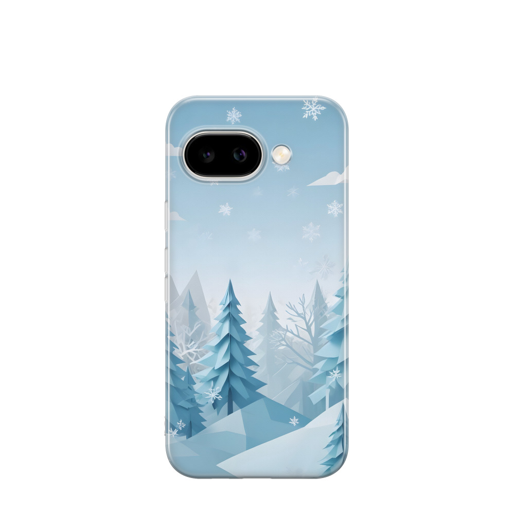 Google Pixel 9a Gummi Hülle Schneewald - Blau