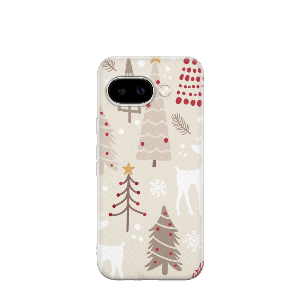 Google Pixel 9a Gummi Hülle Weihnachtszeit im Wald - Beige