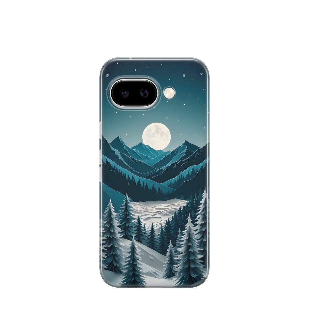 Google Pixel 9a Gummi Hülle Winternacht in den Bergen - Schwarz