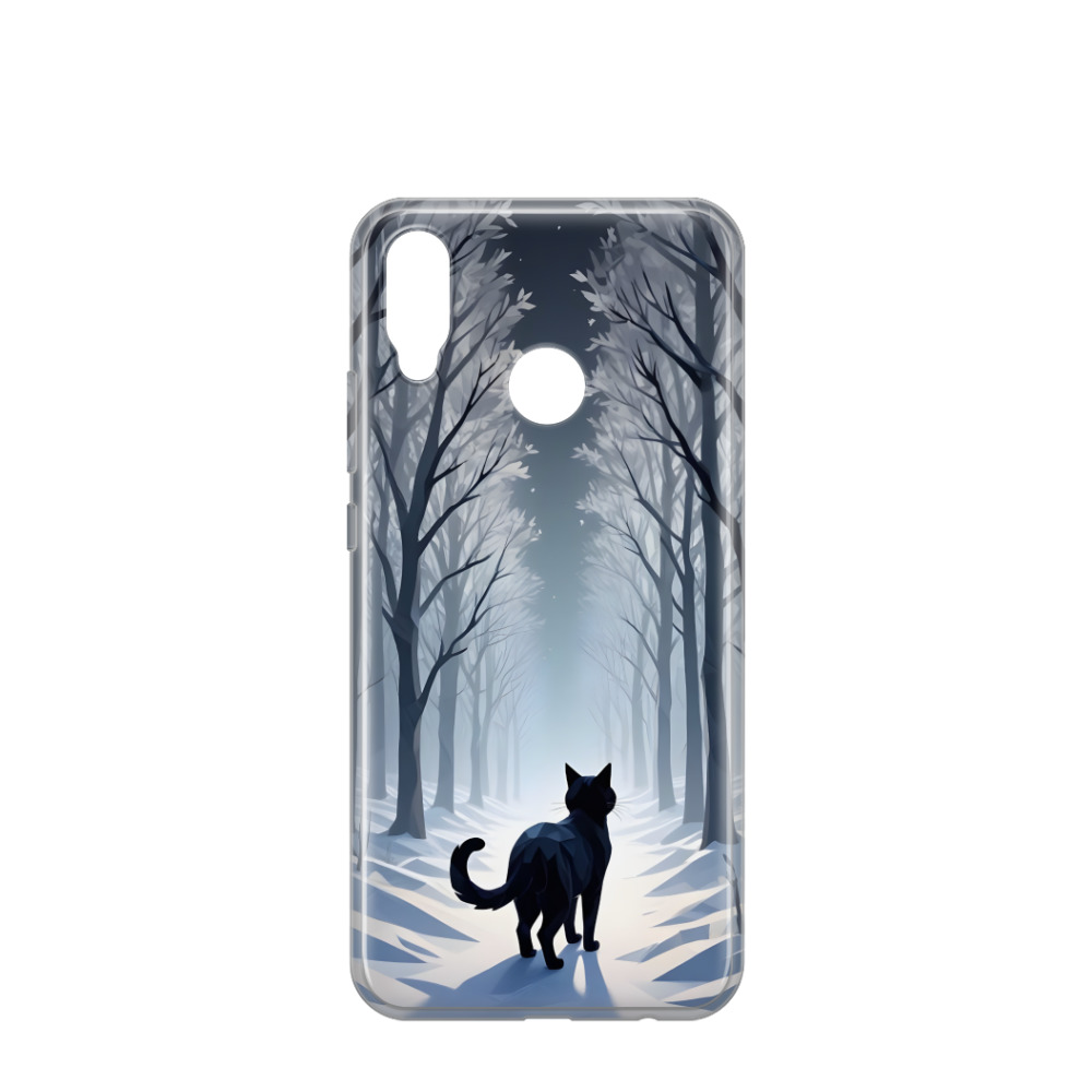Huawei P20 Lite (2018) Gummi Hülle Katze im Winterwald - Schwarz