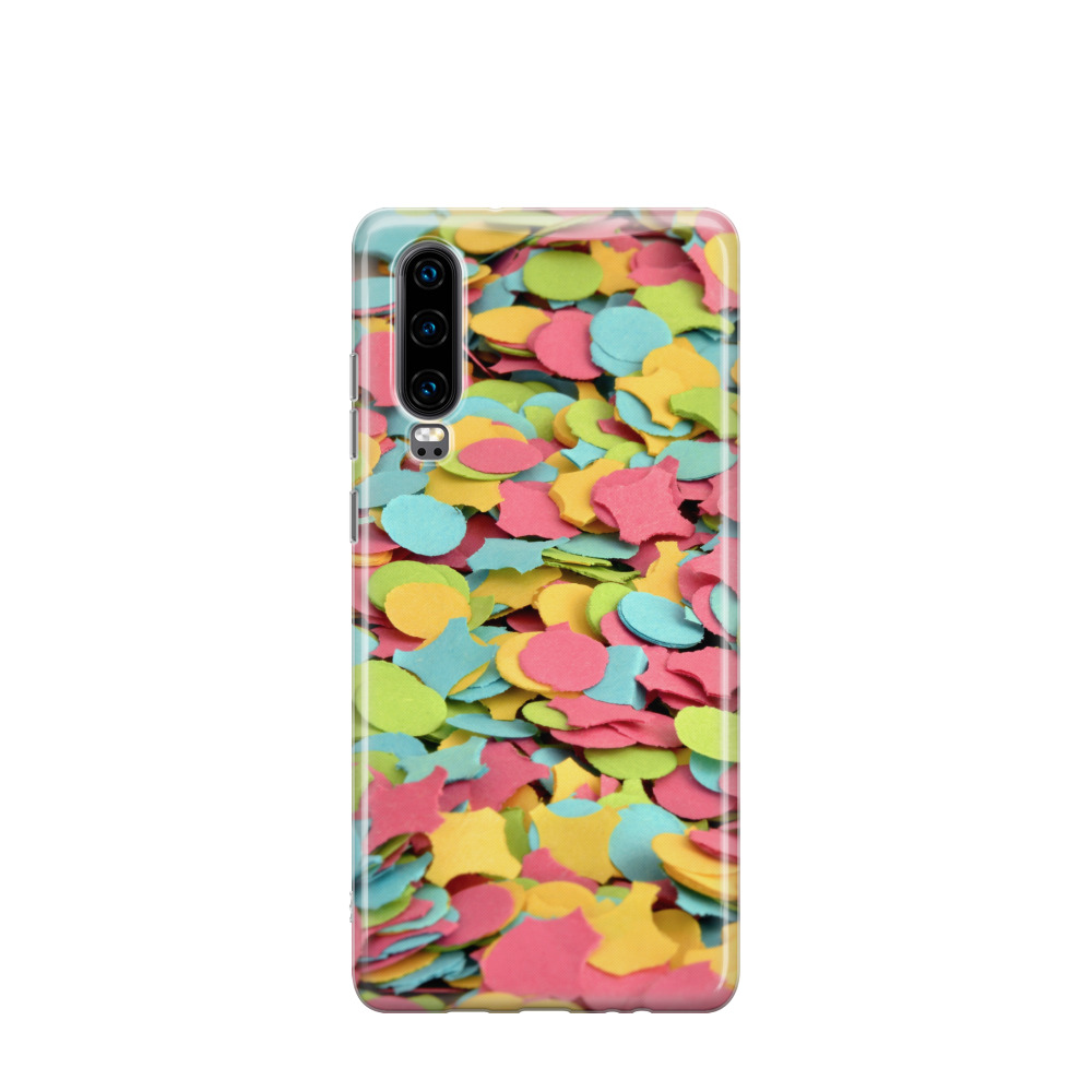 Huawei P30 Gummi Hülle Konfettipracht - Blau / Gelb / Rot