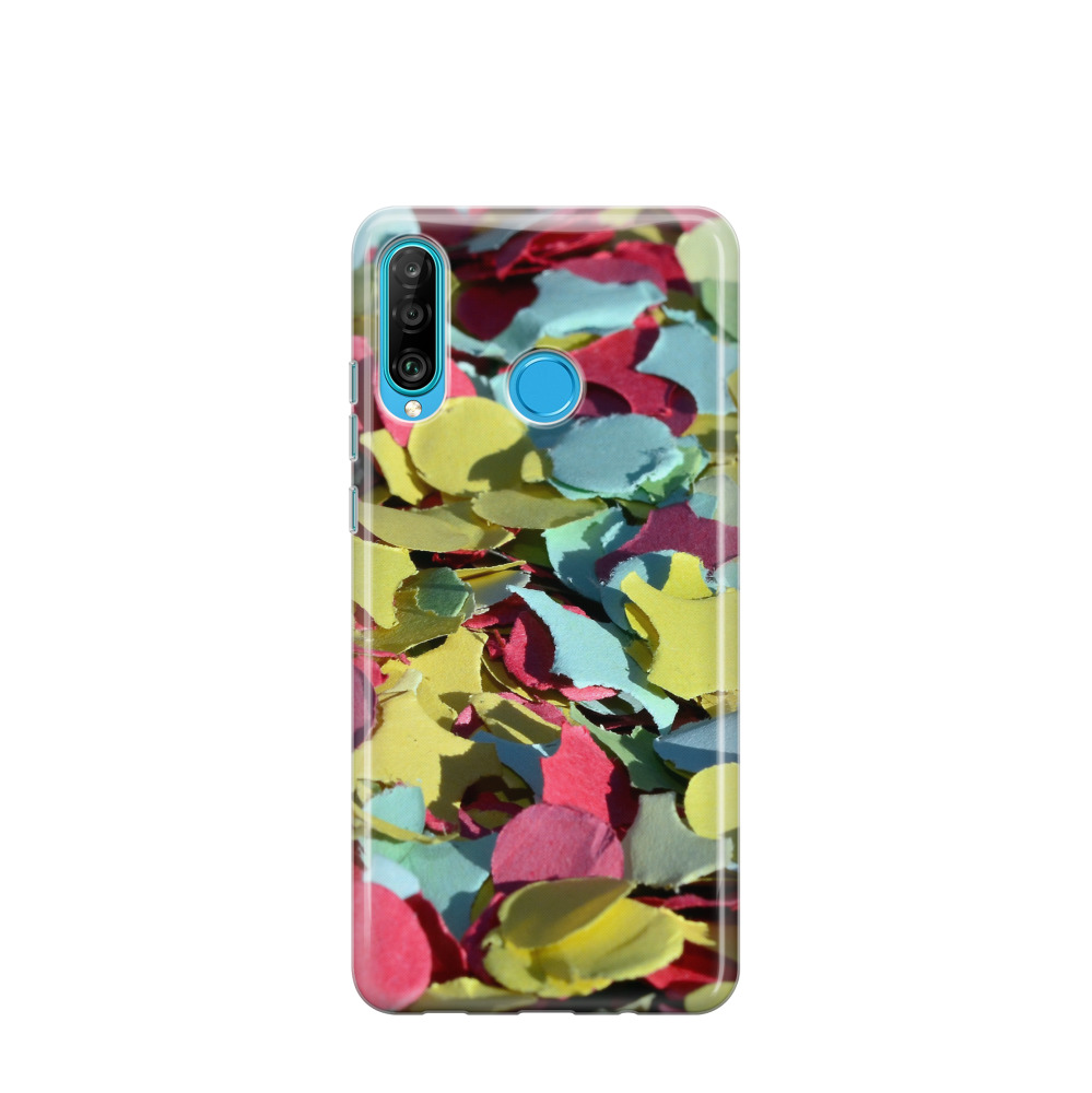 Huawei P30 Lite New Edition Gummi Hülle Fasnachtsfreuden - Blau / Gelb / Rot