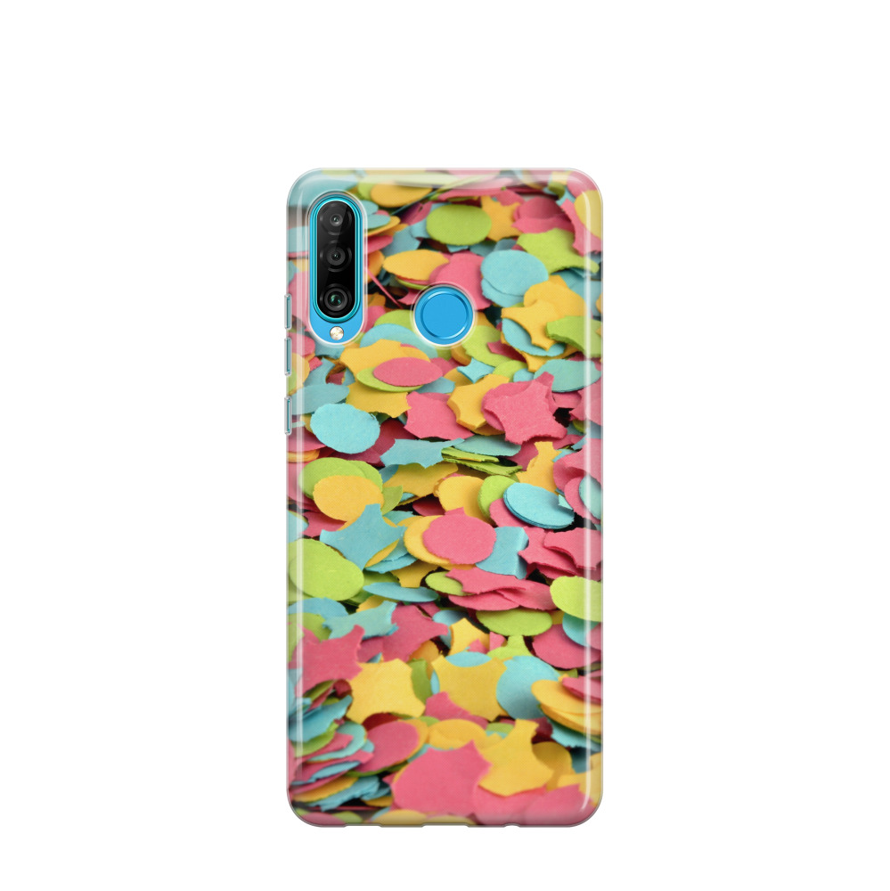 Huawei P30 Lite New Edition Gummi Hülle Konfettipracht - Blau / Gelb / Rot