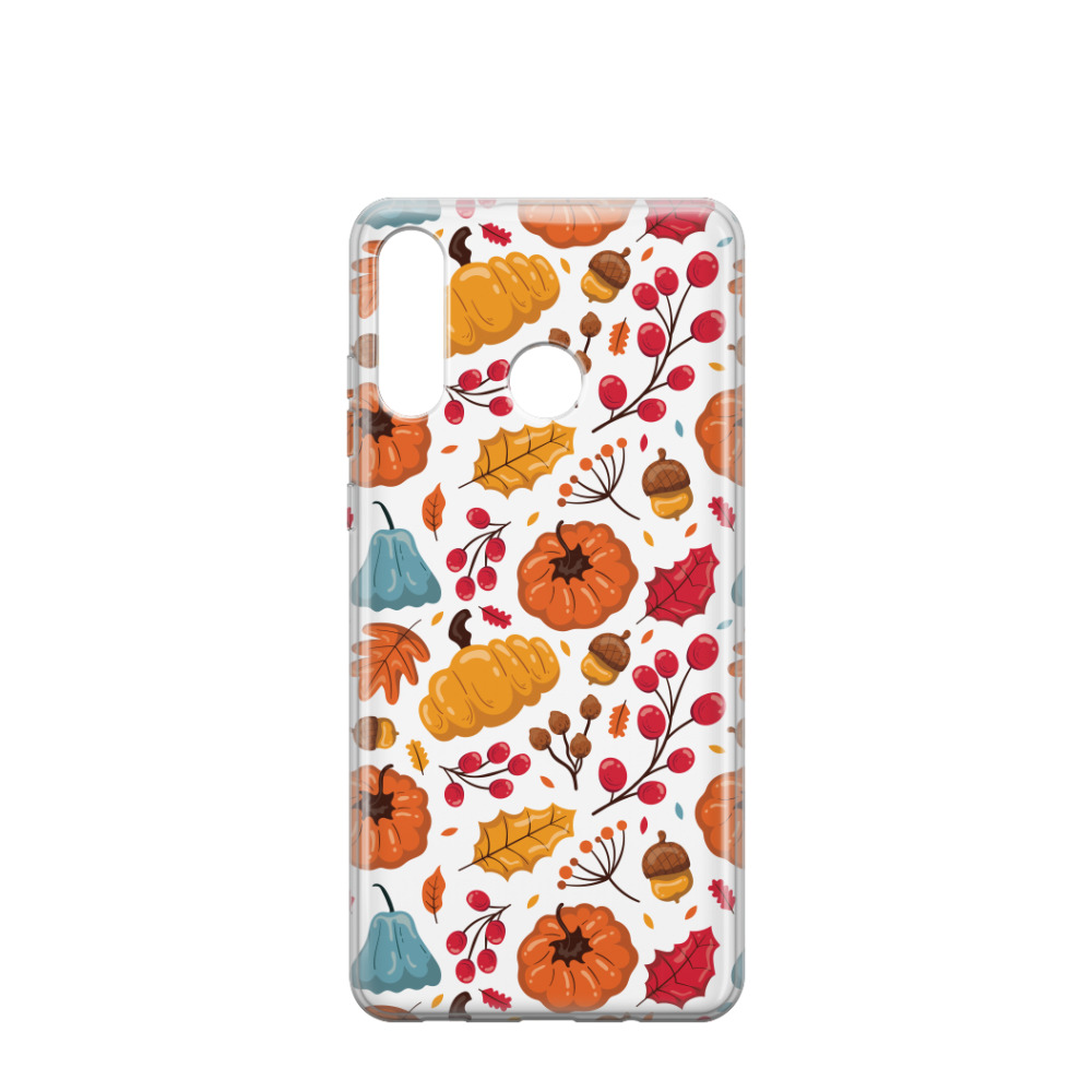 Huawei P30 Lite New Edition Gummi Hülle Laub und Kürbisse - Orange