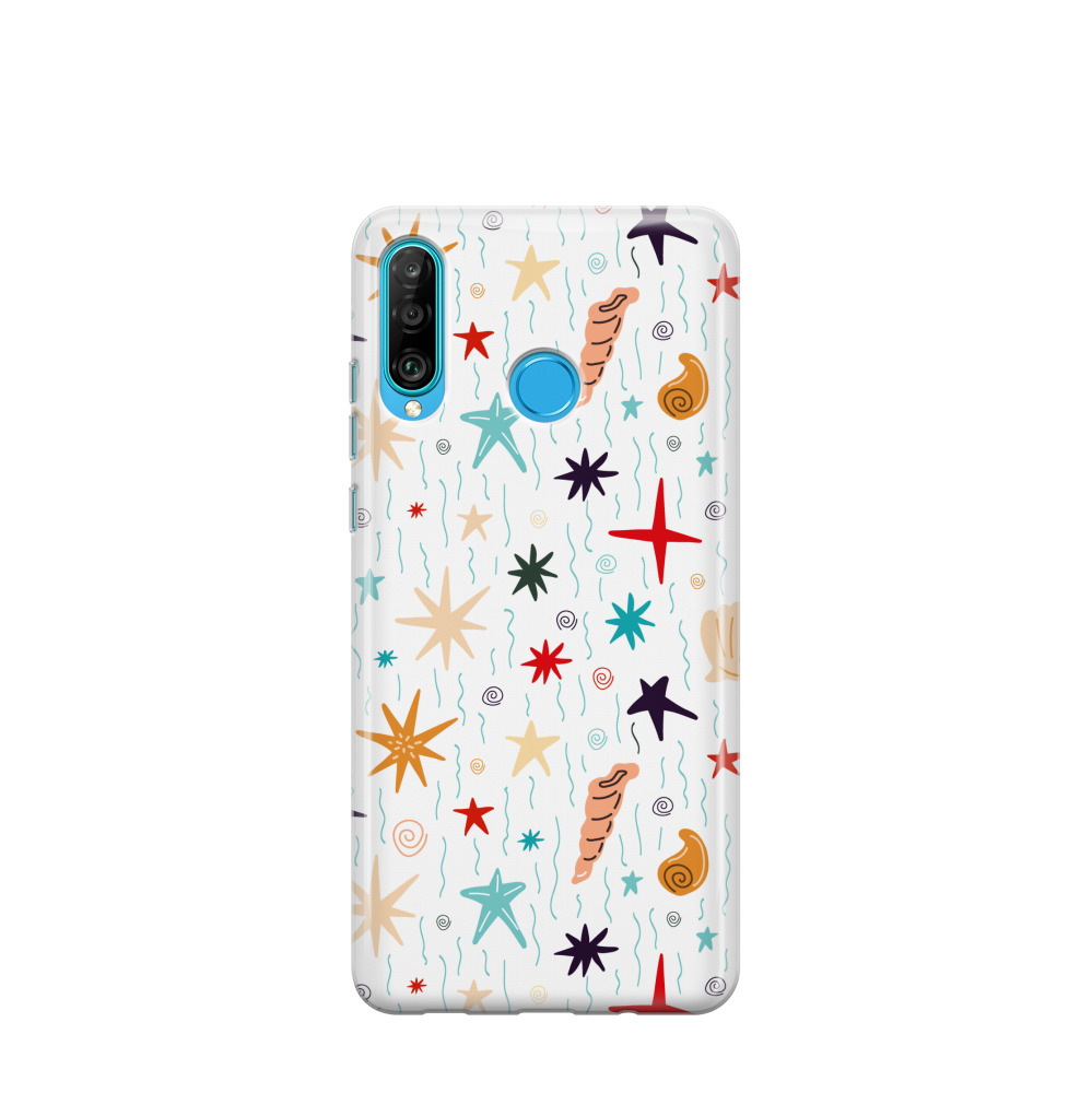 Huawei P30 Lite New Edition Gummi Hülle Meeresmuster - Weiss