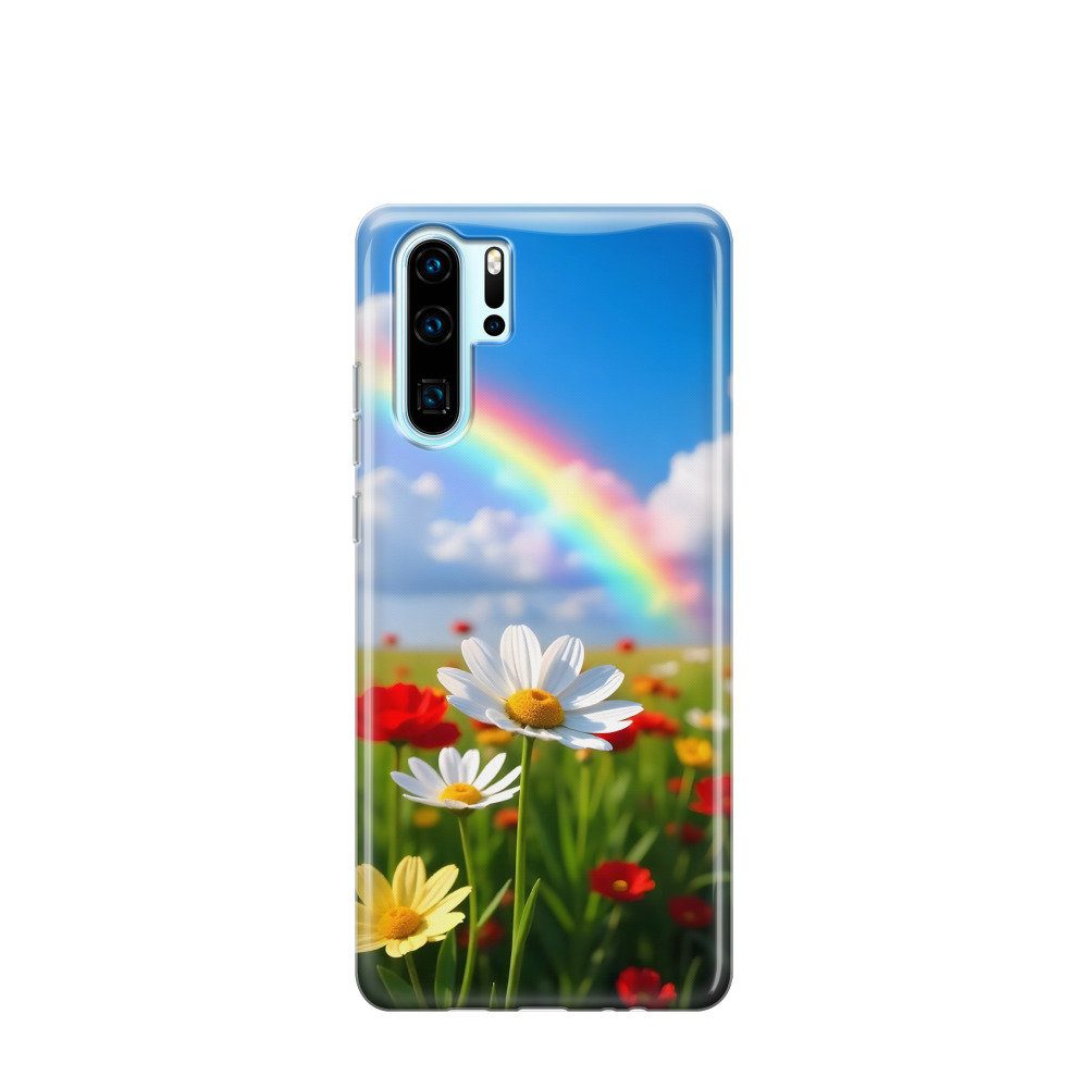 Huawei P30 Pro Gummi Hülle Gänseblümchen unter dem Regenbogen - Grün