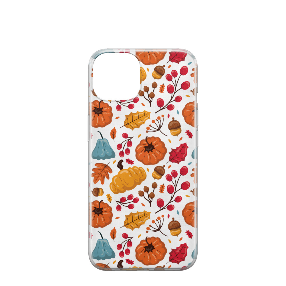 iPhone 13 Mini Mini coque en caoutchouc Feuilles et citrouilles - Orange