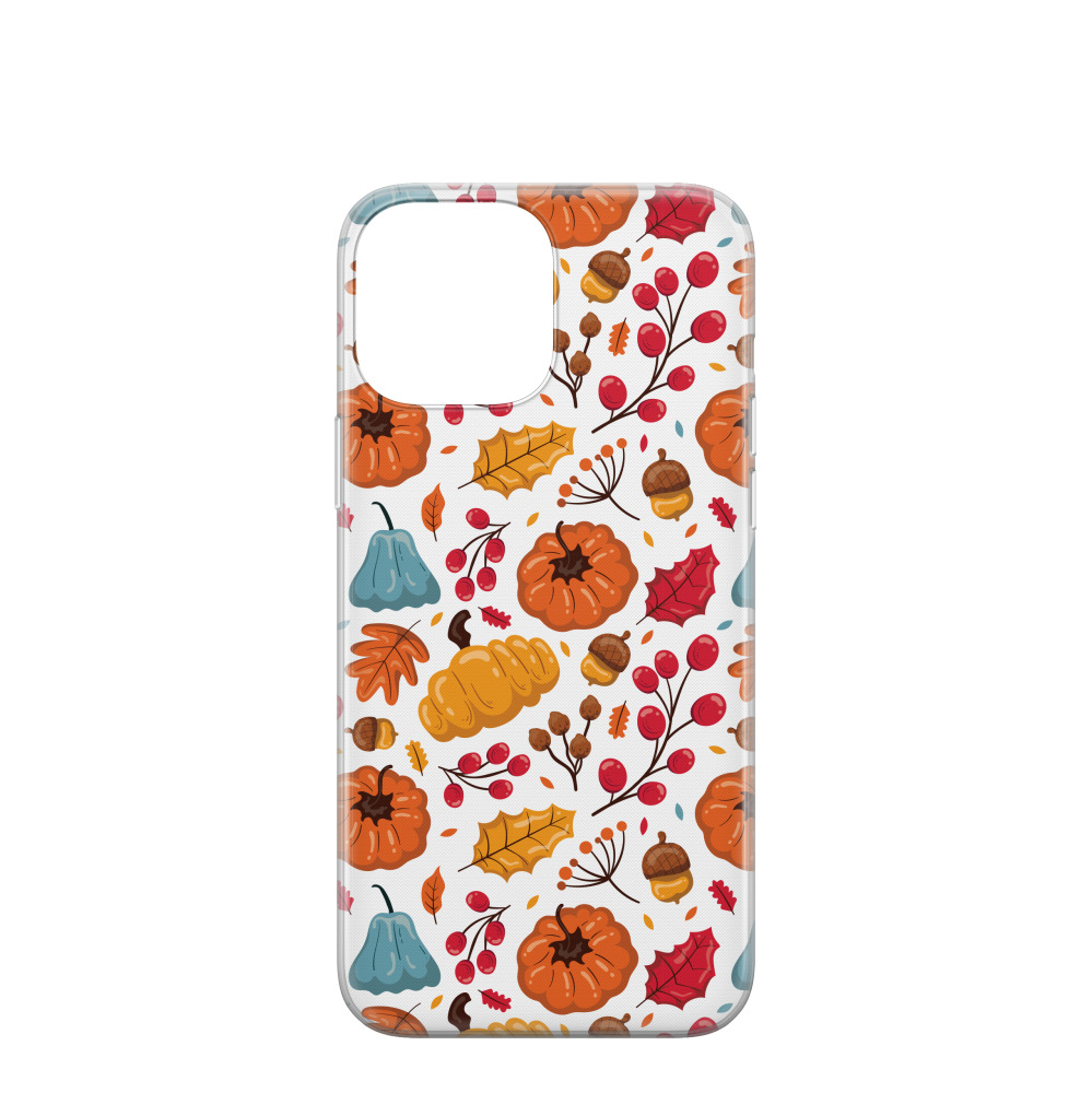 iPhone 13 Pro Max Gummi Hülle Laub und Kürbisse - Orange