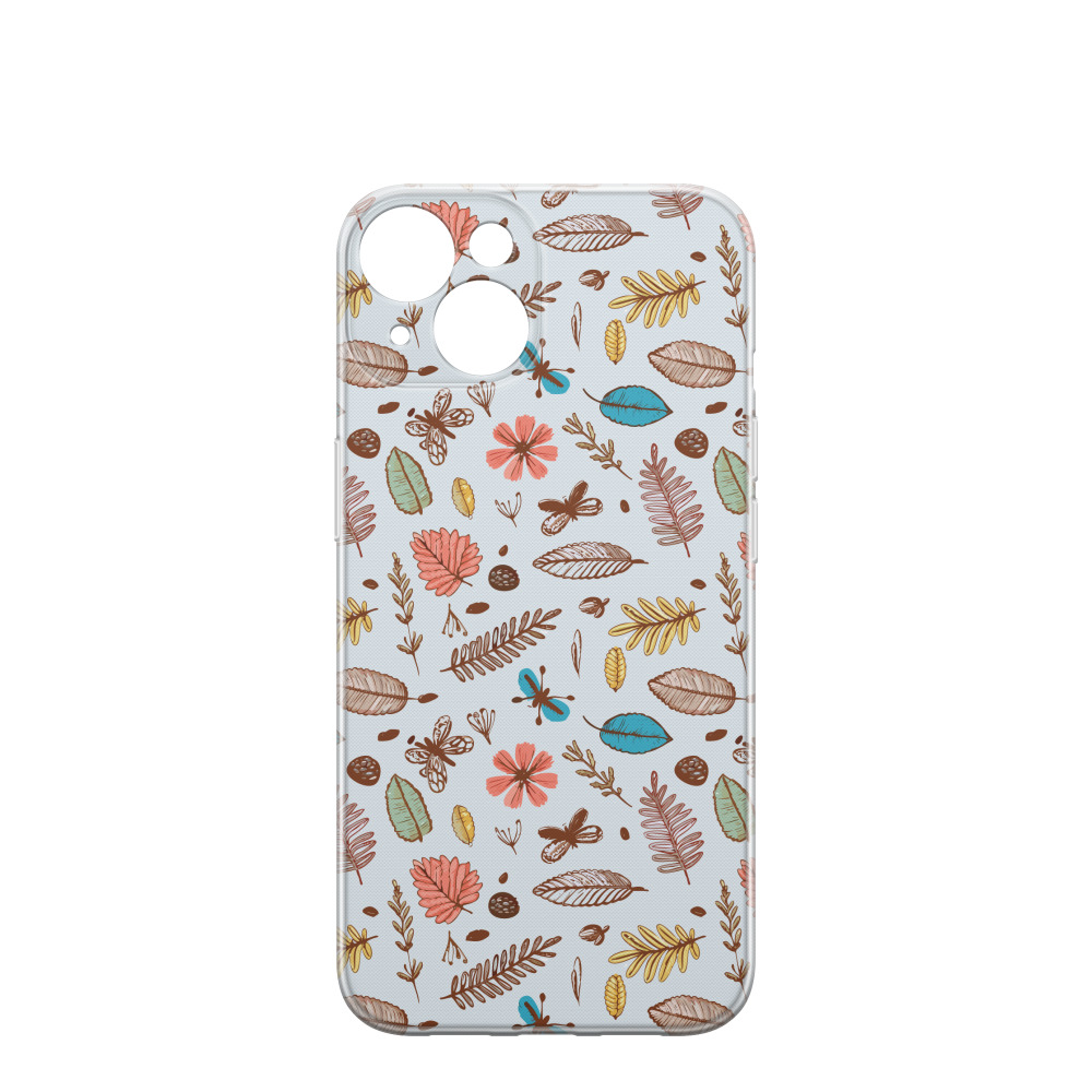 iPhone 14 Coque en caoutchouc Fleurs d'automne 03 - Bleu / Jaune / Rouge