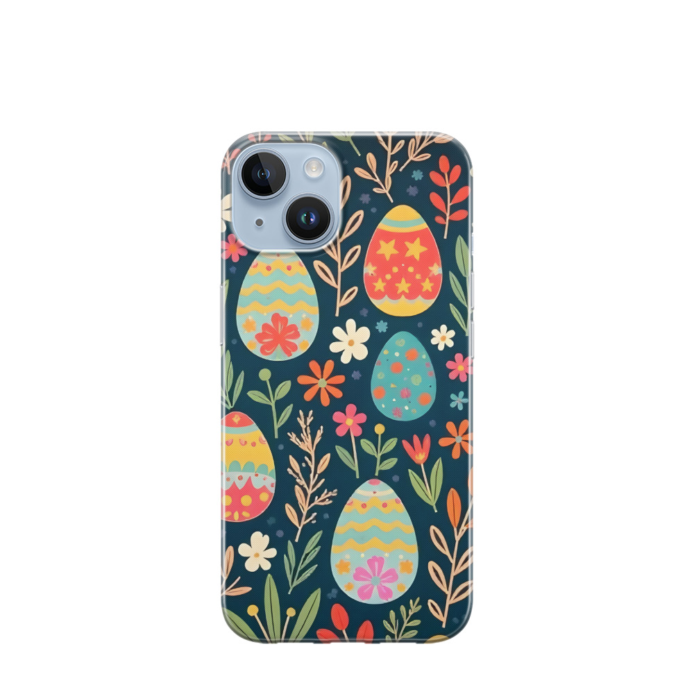 iPhone 14 Gummi Hülle Blütenzauber zu Ostern - Blau