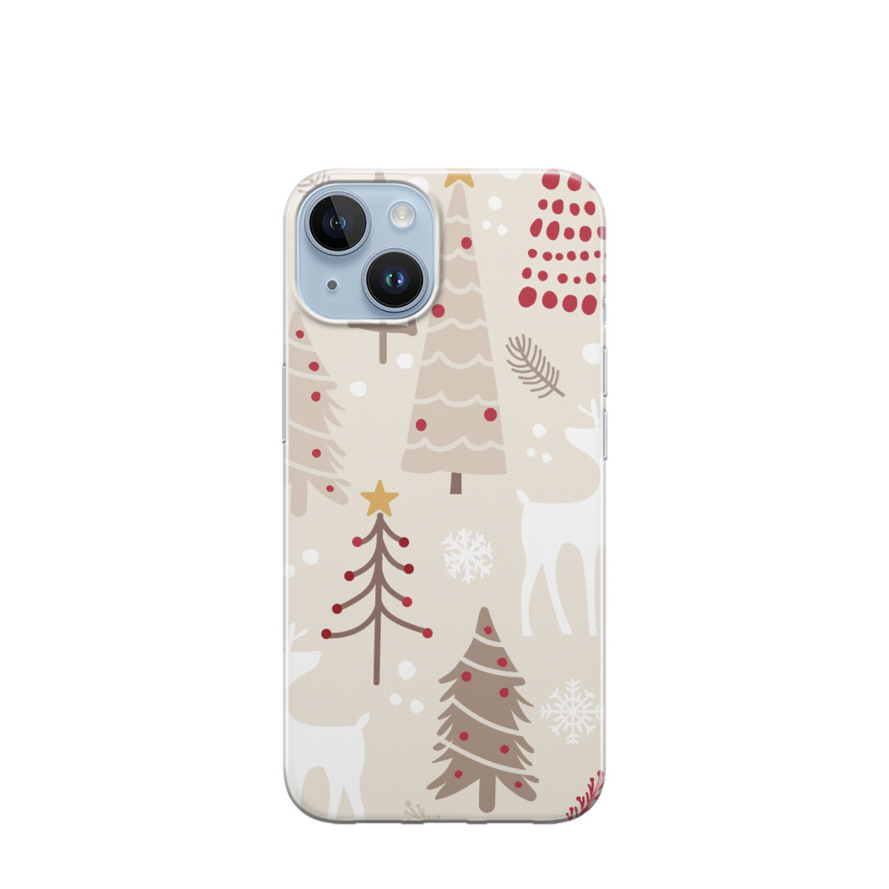 iPhone 14 Gummi Hülle Weihnachtszeit im Wald - Beige