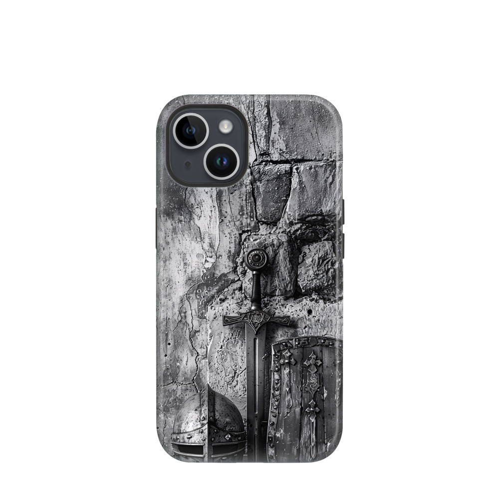 iPhone 14 Hybrid (Kunststoff / Gummi) Hülle Sword & Shield - Grau