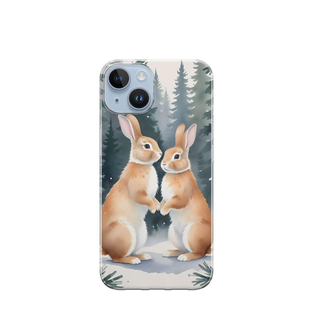 iPhone 14 Plus Gummi Hülle Fellnasen im Winterwald - Braun