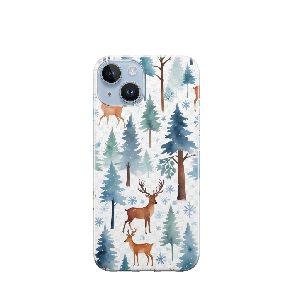iPhone 14 Plus Gummi Hülle Schneehirsche - Blau / Gelb / Rot