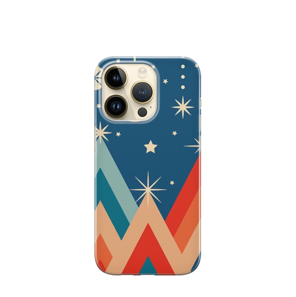 iPhone 14 Pro Gummi Hülle Weihnachtsberge - Blau / Gelb / Rot