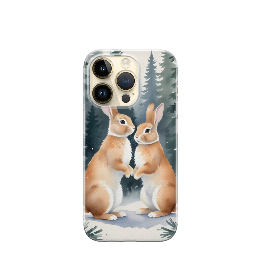 iPhone 14 Pro Max Gummi Hülle Fellnasen im Winterwald - Braun
