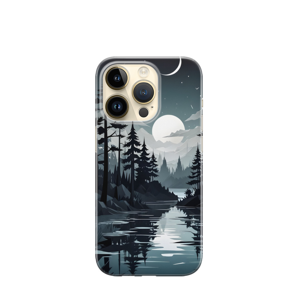 iPhone 14 Pro Max Gummi Hülle Mondschein und Schatten - Schwarz