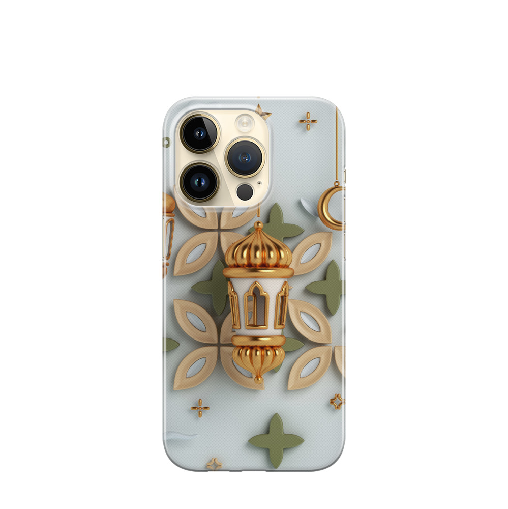 iPhone 14 Pro Max Gummi Hülle Ramadan-Lichter - Gold