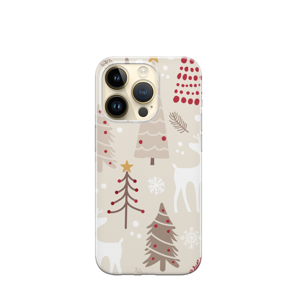 iPhone 14 Pro Max Gummi Hülle Weihnachtszeit im Wald - Beige