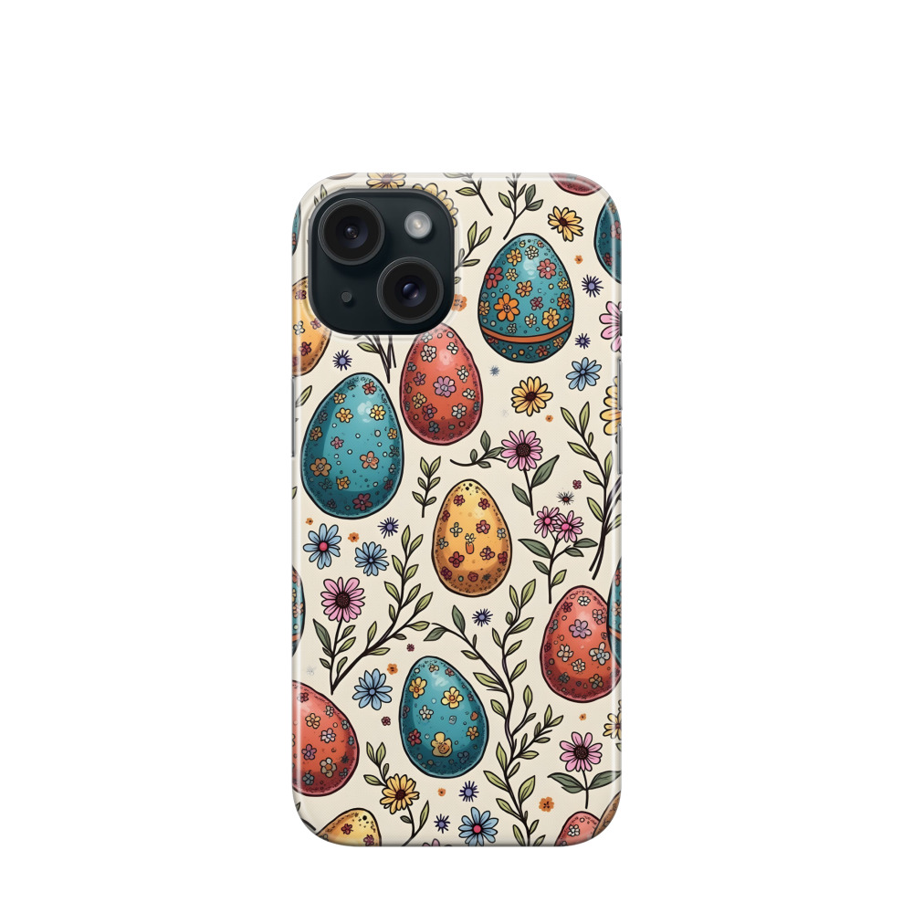 iPhone 15 Gummi Hülle Blumeneier - Blau / Gelb / Rot