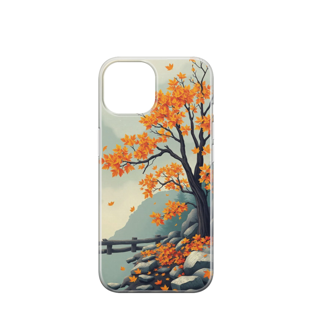 iPhone 15 Gummi Hülle Herbstliche Felsen - Orange