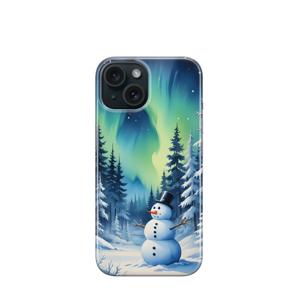 iPhone 15 Gummi Hülle Nordlicht Schneemann - Türkis