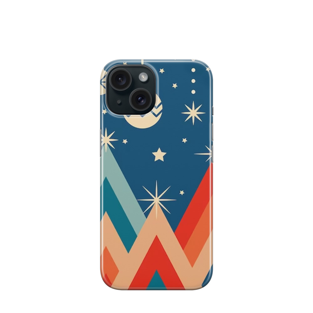 iPhone 15 Gummi Hülle Weihnachtsberge - Blau / Gelb / Rot