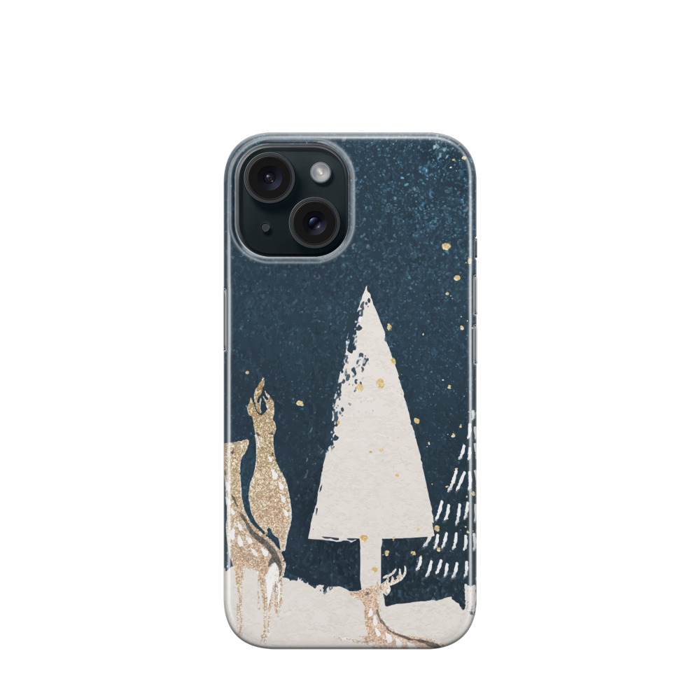 iPhone 15 Gummi Hülle Winterlicher Hirsch - Blau