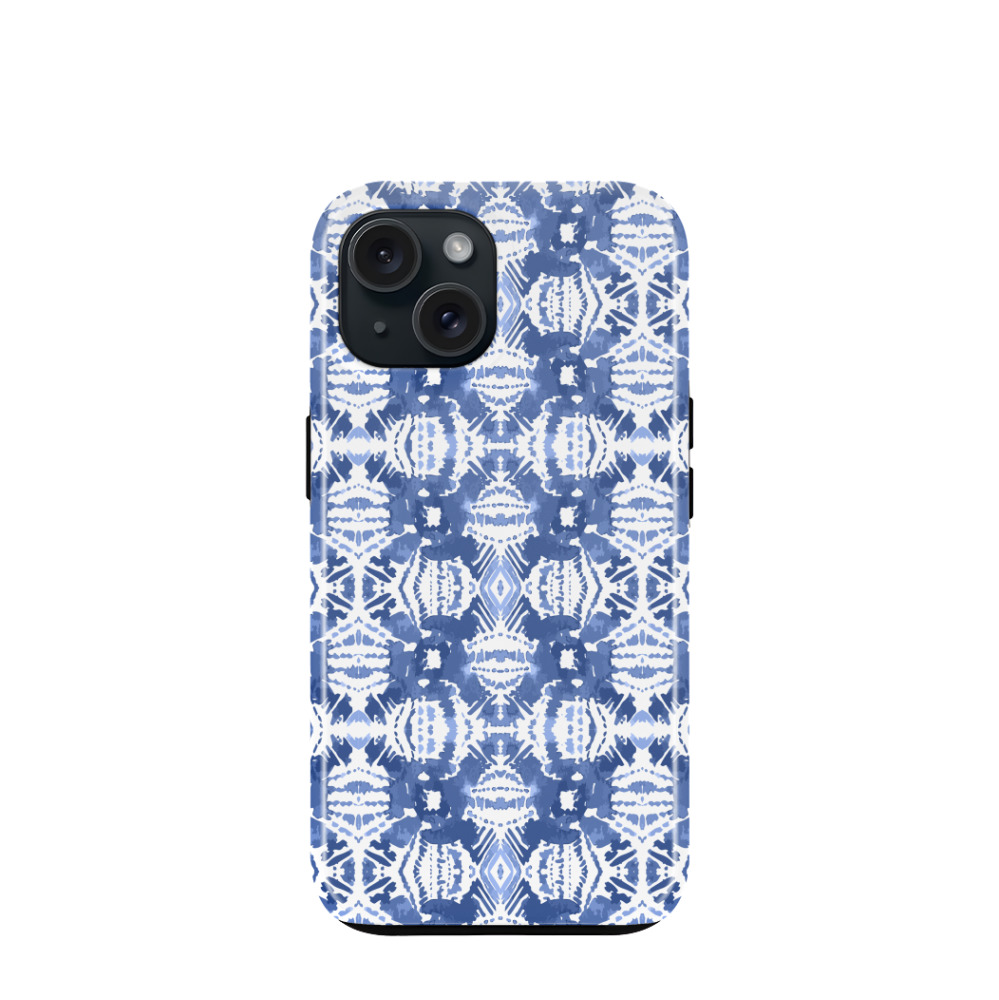 iPhone 15 Hybrid (Kunststoff / Gummi) Hülle Sapphire Mosaic - Blau