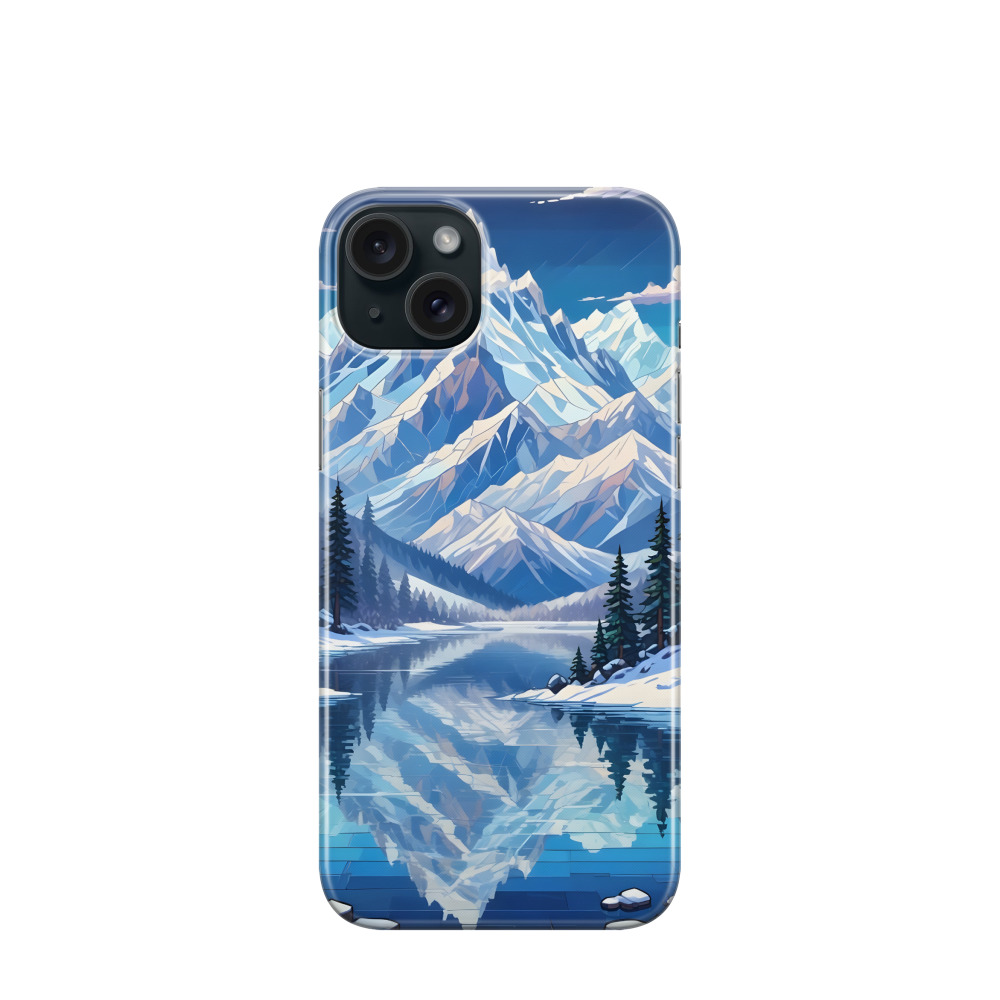 iPhone 15 Plus Gummi Hülle Bergzauber im Eissee - Blau
