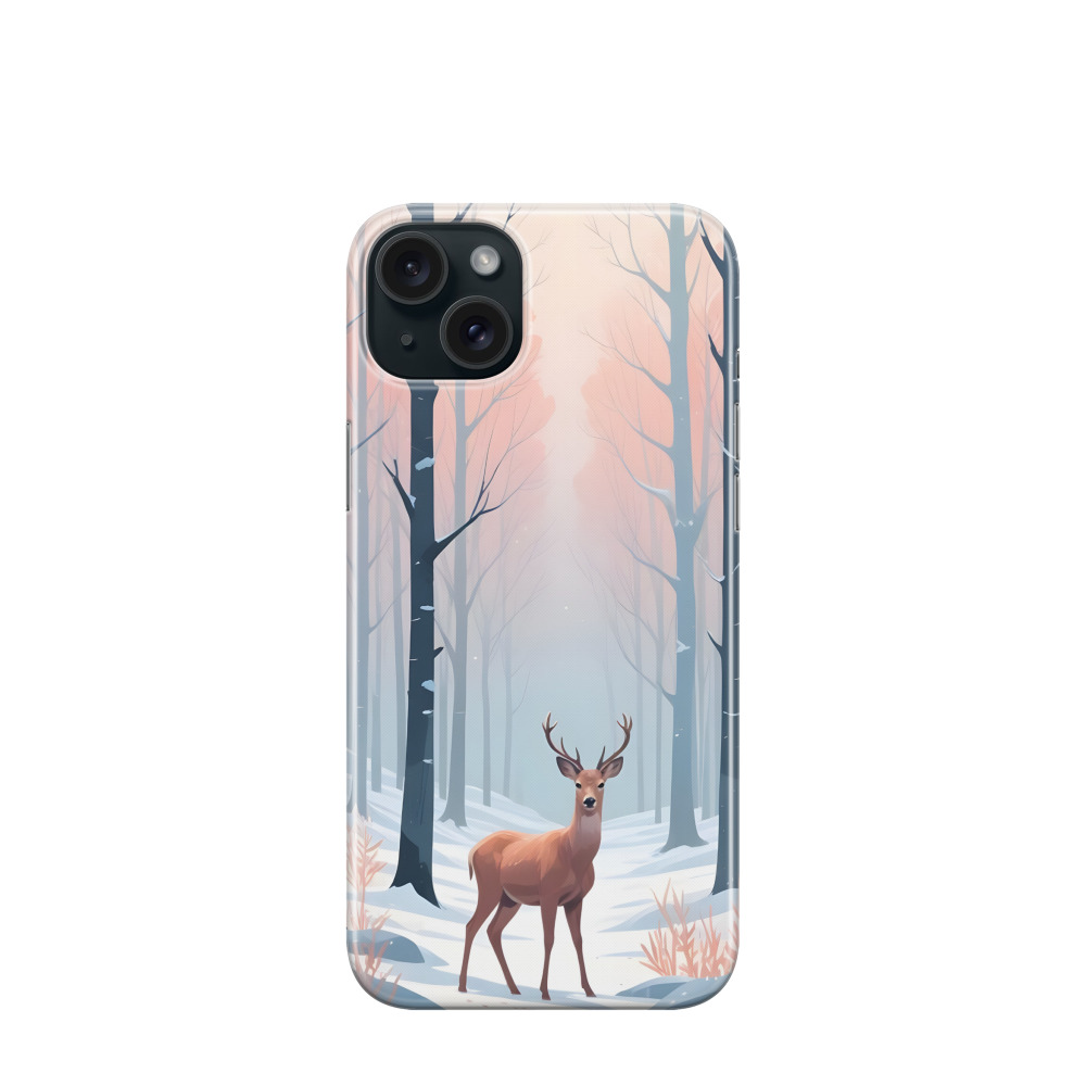 iPhone 15 Plus Gummi Hülle Hirsch im Morgennebel - Weiss