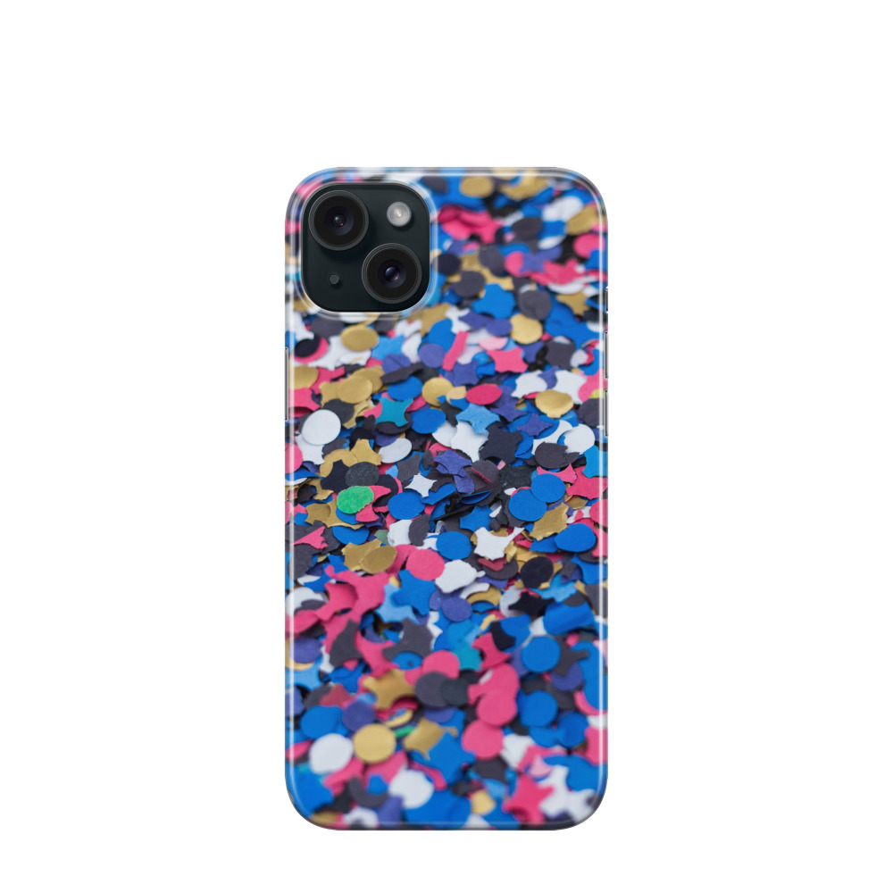 iPhone 15 Plus Gummi Hülle Konfettiglück - Blau