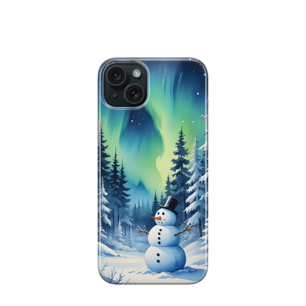 iPhone 15 Plus Gummi Hülle Nordlicht Schneemann - Türkis