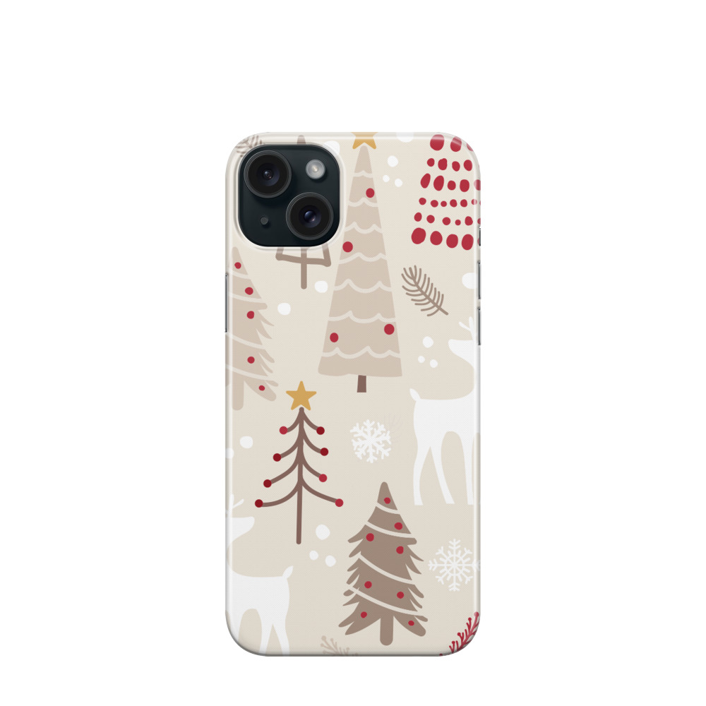 iPhone 15 Plus Gummi Hülle Weihnachtszeit im Wald - Beige