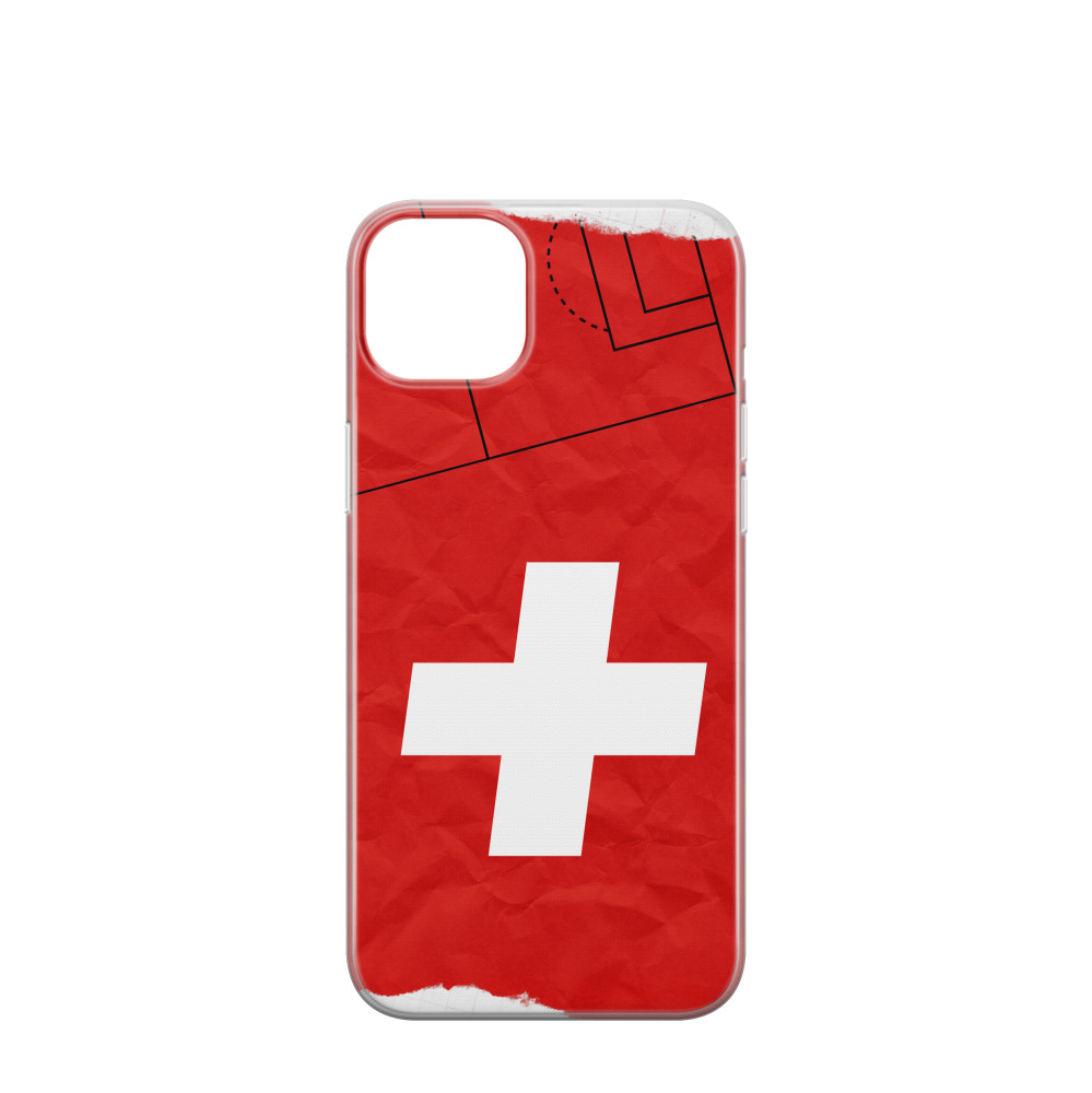 iPhone 15 Plus Plus coque caoutchouc Suisse terrain de foot 2 - Rouge