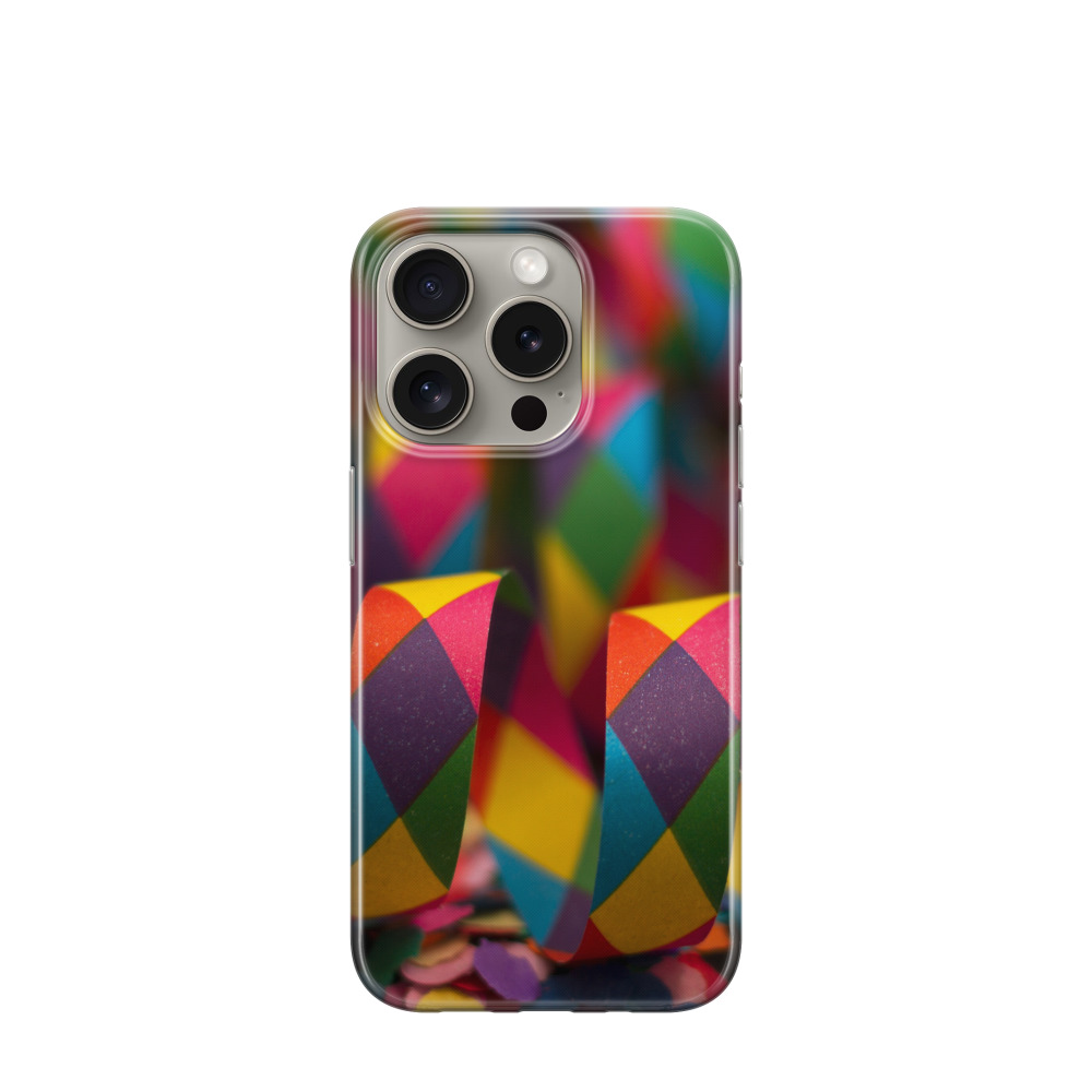 iPhone 15 Pro Gummi Hülle Farbenkarussell - Blau / Gelb / Rot