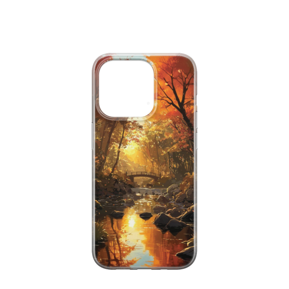 iPhone 15 Pro Gummi Hülle Goldener Herbstmorgen - Orange