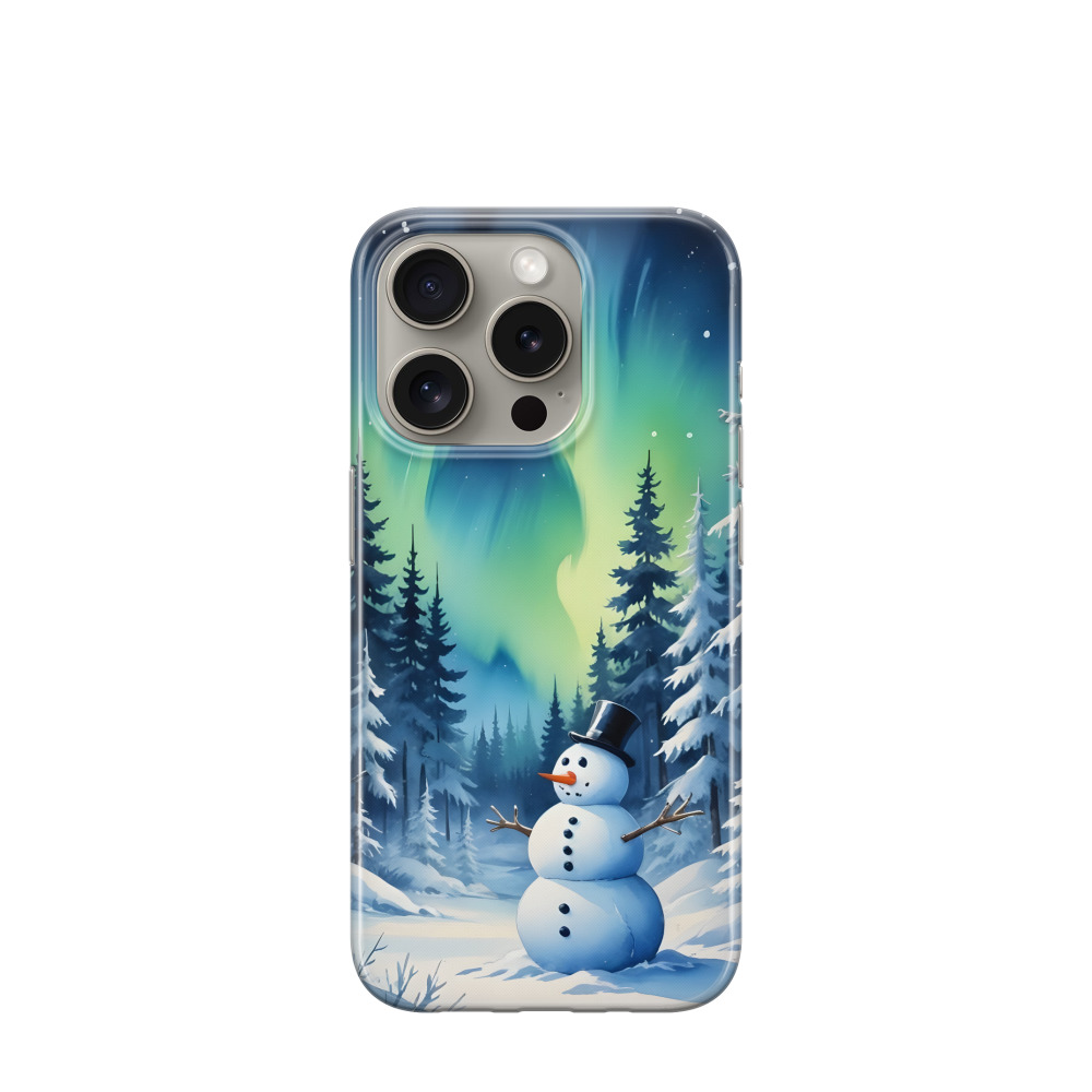 iPhone 15 Pro Gummi Hülle Nordlicht Schneemann - Türkis