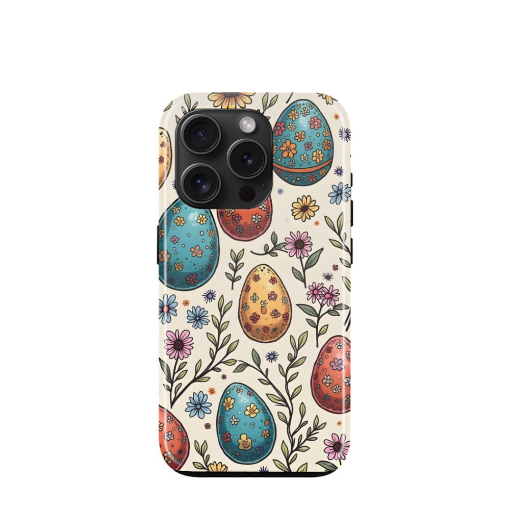 iPhone 15 Pro Hybrid (Kunststoff / Gummi) Hülle Blumeneier - Blau / Gelb / Rot