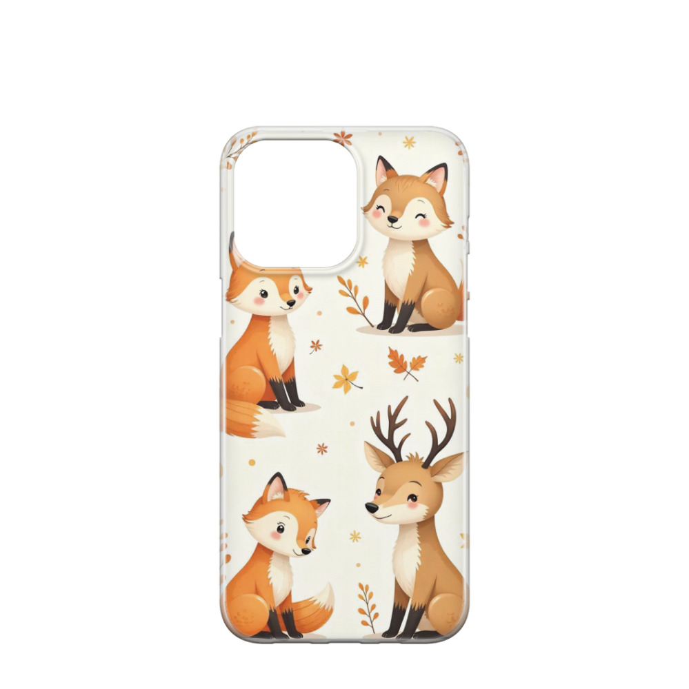 iPhone 15 Pro Max Coque Pro Max en caoutchouc Animaux de la forêt en automne - Orange