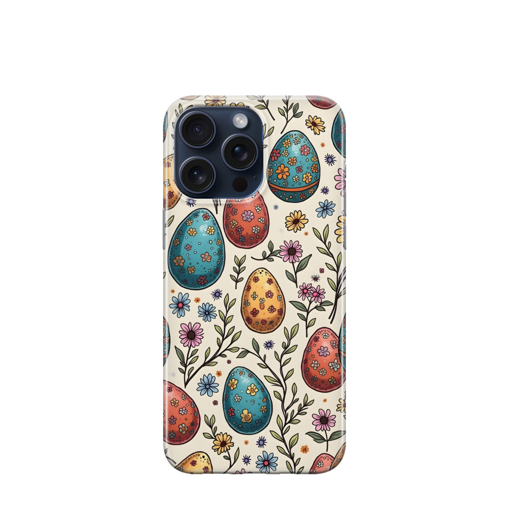iPhone 15 Pro Max Gummi Hülle Blumeneier - Blau / Gelb / Rot