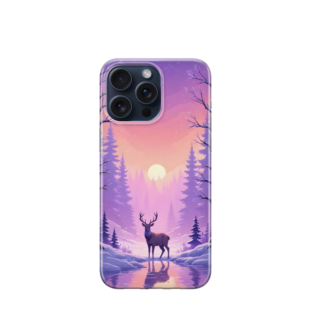 iPhone 15 Pro Max Gummi Hülle Hirsch im Abendrot - Violet