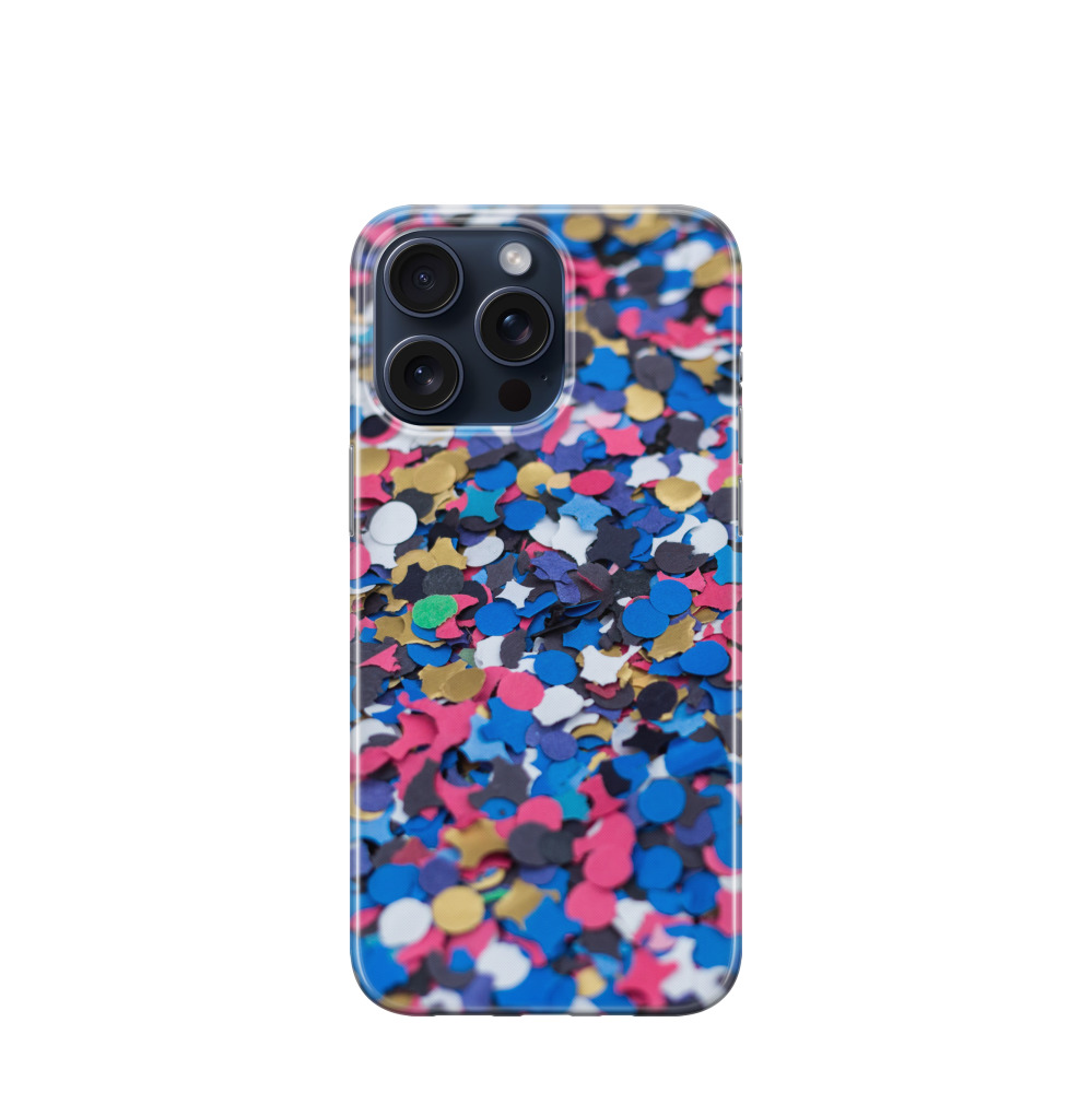 iPhone 15 Pro Max Gummi Hülle Konfettiglück - Blau
