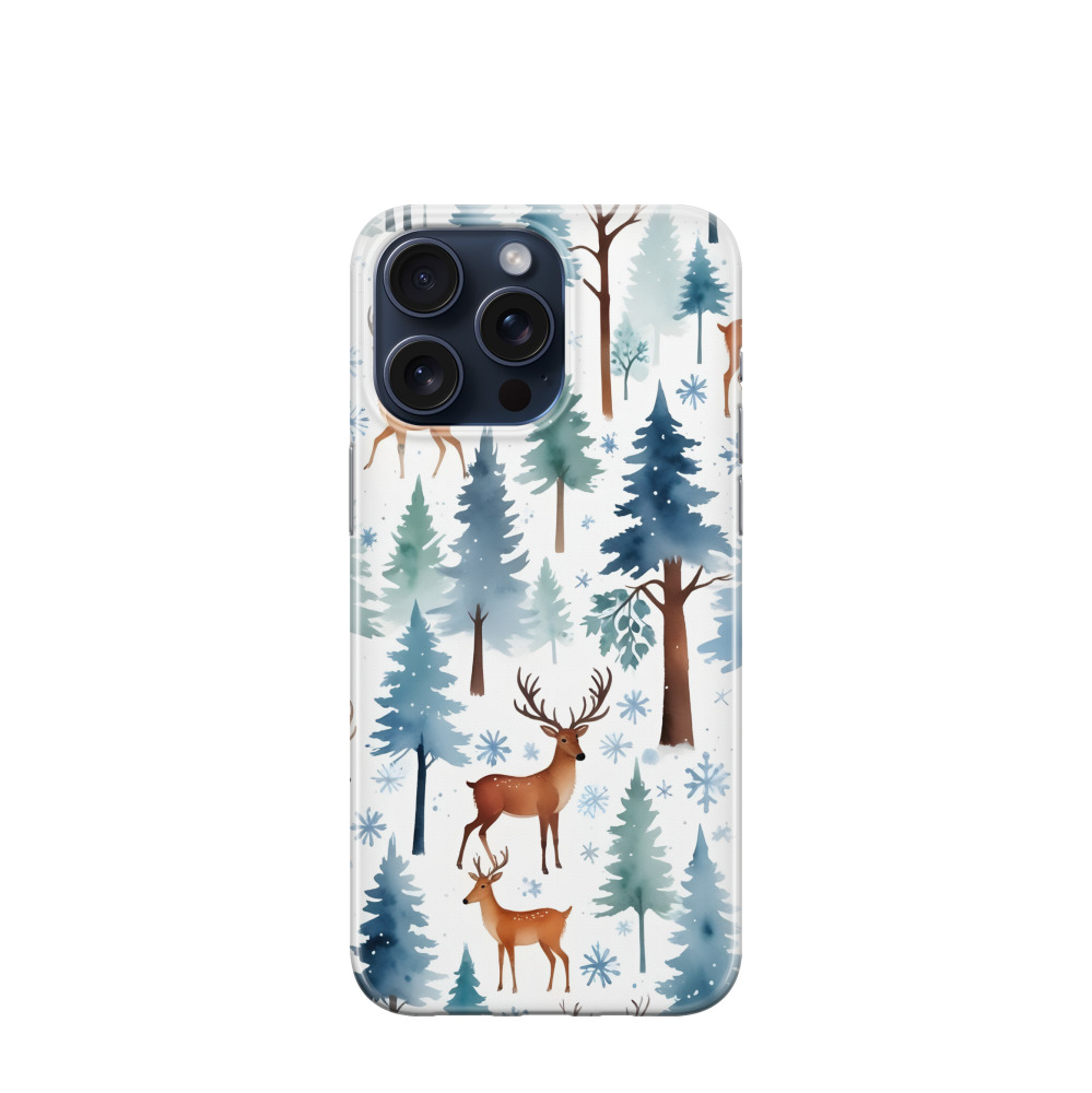 iPhone 15 Pro Max Gummi Hülle Schneehirsche - Blau / Gelb / Rot